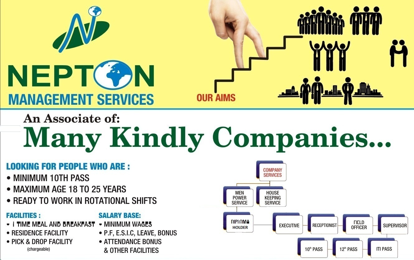 To meet the growing requirements of reliable and efficient services, we, “Nepton Management services”, established our selves, emerging as a practicable business entity in this industry. Since inception, we have been holding fast to values of hard work, honesty, quality, integrity and dedication. Acquisition of immense knowledge and market know-how has taken us to impressive levels of one of the leading service providers in this domain. Our highly trained professionals and skilled employees have helped us in exceeding our clients expectations by offering outstanding services and support such as Manpower Specializations Services for Industrial, and Corporate