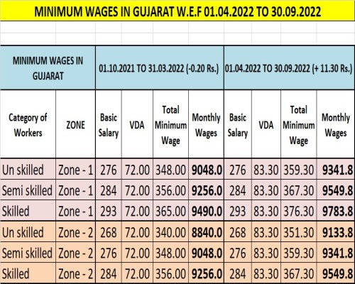 Gujarat Minimum Wages 1st Oct 2017 to 31st Mar 2018